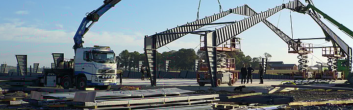 Stålhallene våre leveres i komplette, monteringsklare byggesett. Ingen sveising eller tilskjæring er nødvendig på byggeplassen. I tillegg har alle rammer og bjelker ferdigstansede hull, noe som garanterer at hallen kan monteres raskt, sikkert og på den måten våre ingeniører har planlagt det.